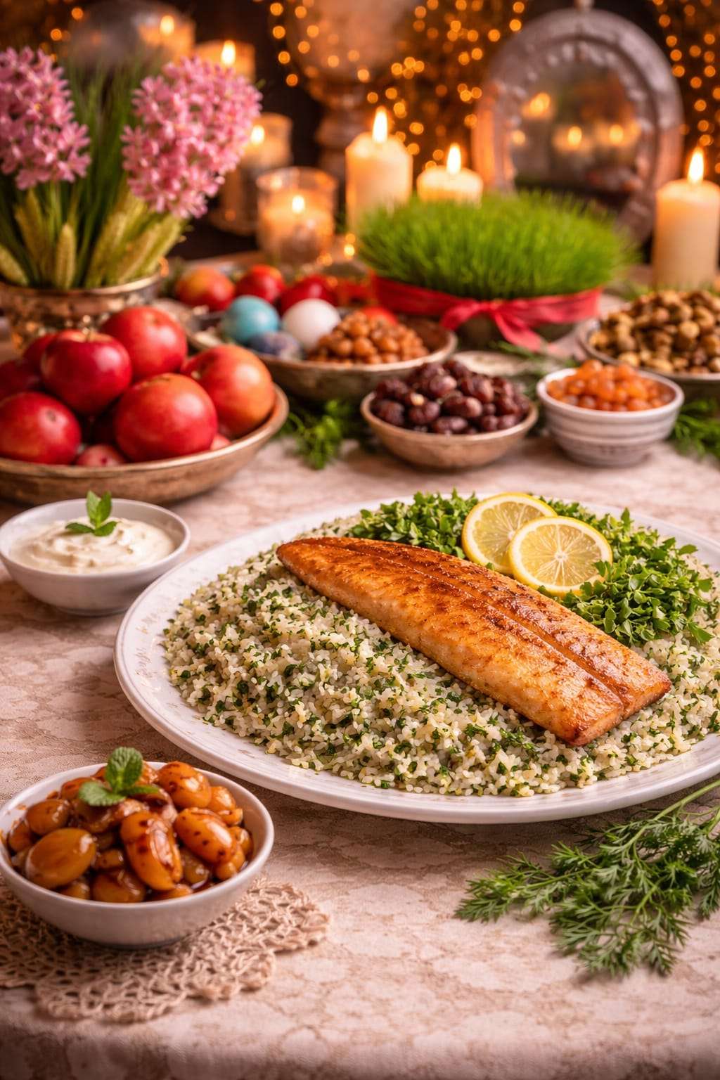 Feiere Nowruz 2026 in Charlottenburg mit einem der traditionsreichsten Gerichte der persischen Küche: Sabzi Polo ba Mahi. Am 26. März ab 18:00 Uhr laden wir dich zu einem besonderen Abend ein, der Genuss, Tradition und Atmosphäre vereint.